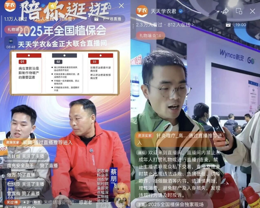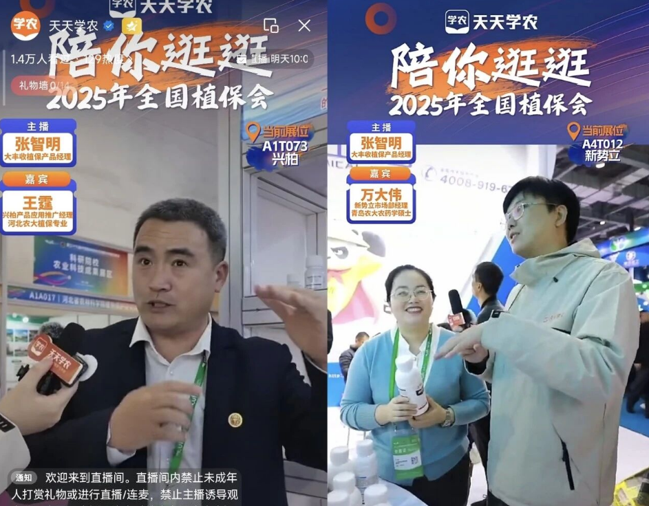 本次植保双交会,不仅汇聚了农资行业前沿技术与趋势洞察,更迎来了一场颠覆传统的专业直播——天天学农联合金正大等头部农资厂家,携手多位行业大咖及权威植保专家,凭借权威嘉宾阵容、全链条行业互动及科技赋能创新,构建起线上线下深度融合的行业交流新场景。